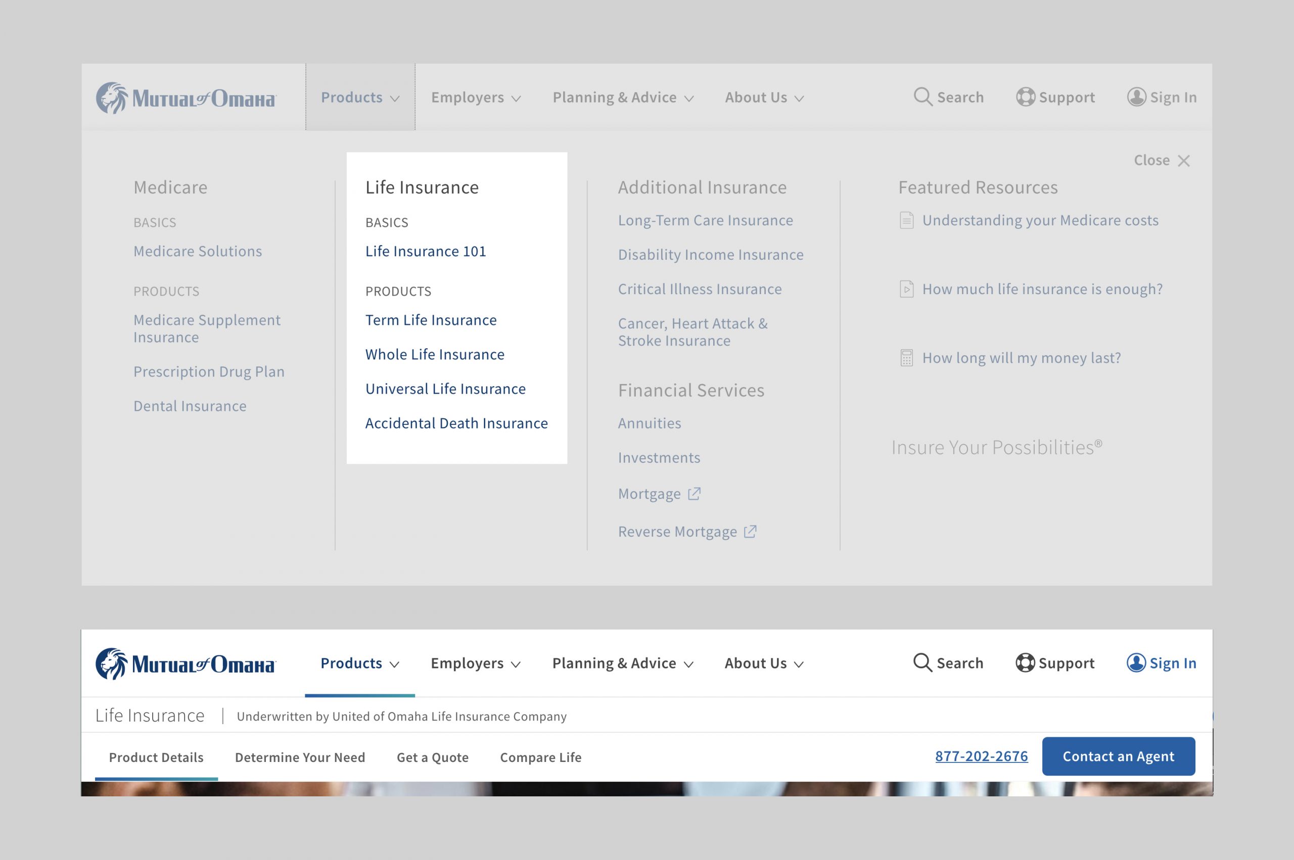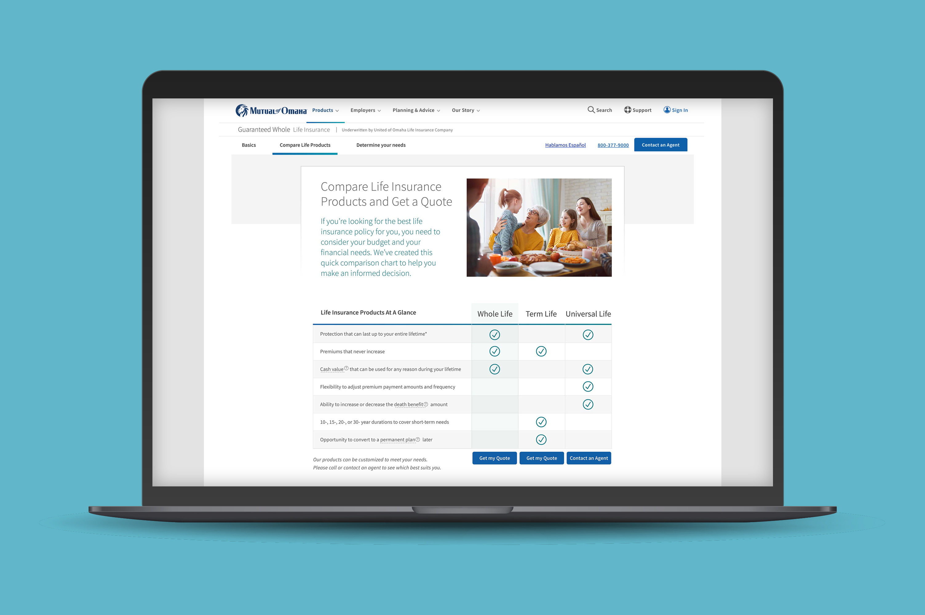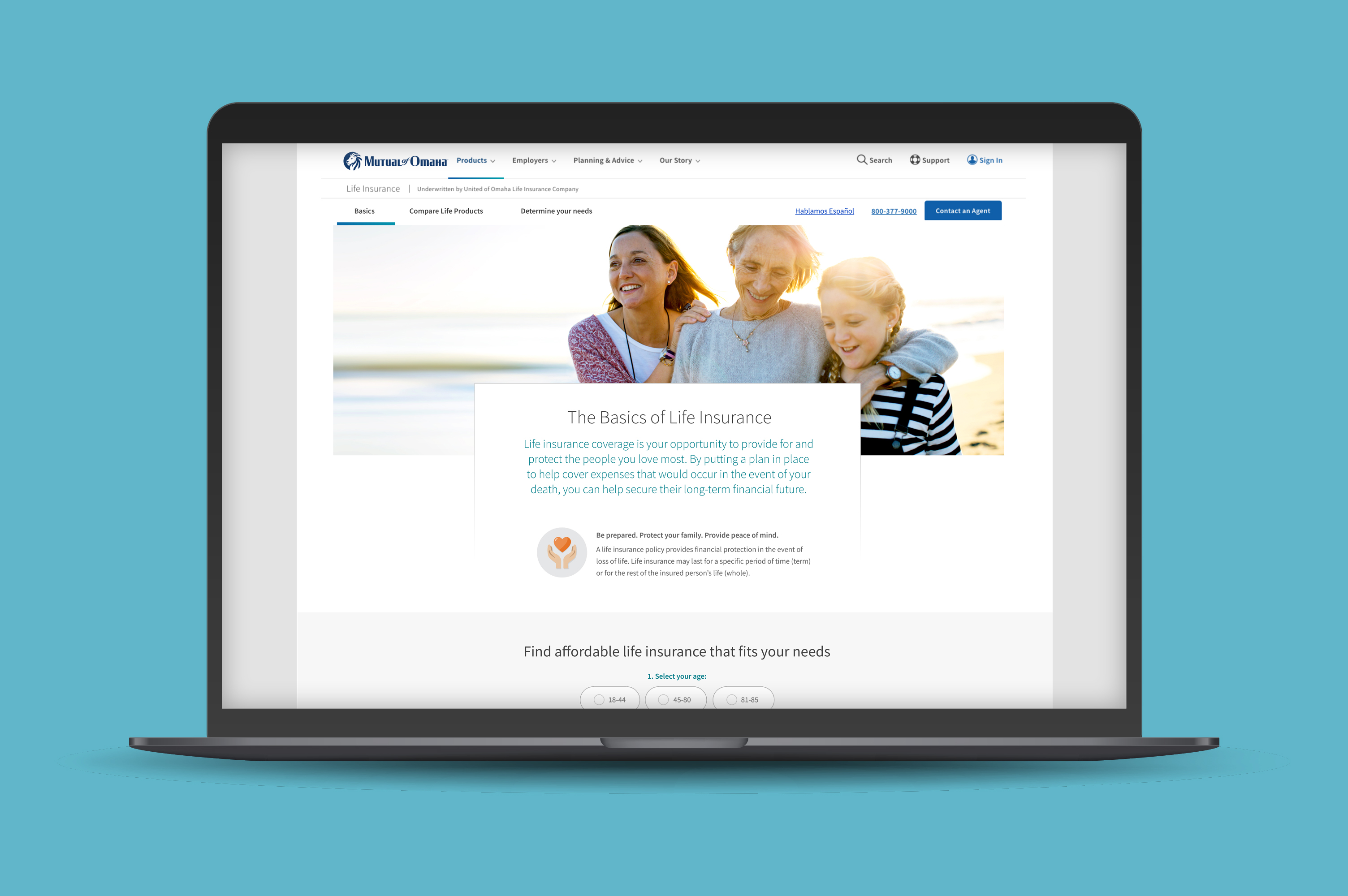 We were tasked with making improvements to the life insurance section of mutualofomaha.com. Insurance can be difficult to understand so one challenge we identified was to make it easier for users to find which type of insurance is best for them. Next, our goal was to make it easy for them to learn more, get a quote and purchase with confidence.